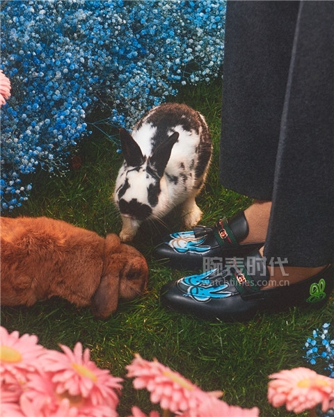 女士系列甄選印花真絲襯衫及半身裙,以及采用對比色彩及幾何圖樣的運動套裝等。男士系列則將生動的兔子印花生動融入多款運動服裝之中。鞋履系列進(jìn)一步凸顯新年主題,女士高跟鞋鞋跟飾有兔耳形狀的蝴蝶結(jié),而樂福鞋款則以噴繪式兔子印花圖樣為創(chuàng)意點綴。從飾有條紋印花的Gucci Diana系列竹節(jié)手袋到采用珍稀皮革、粗花呢材質(zhì)以及鉚釘細(xì)節(jié)共同呈現(xiàn)的Gucci Horsebit 1955系列手袋,品牌標(biāo)志性手袋也推出了呼應(yīng)節(jié)日主題的特別款式。
